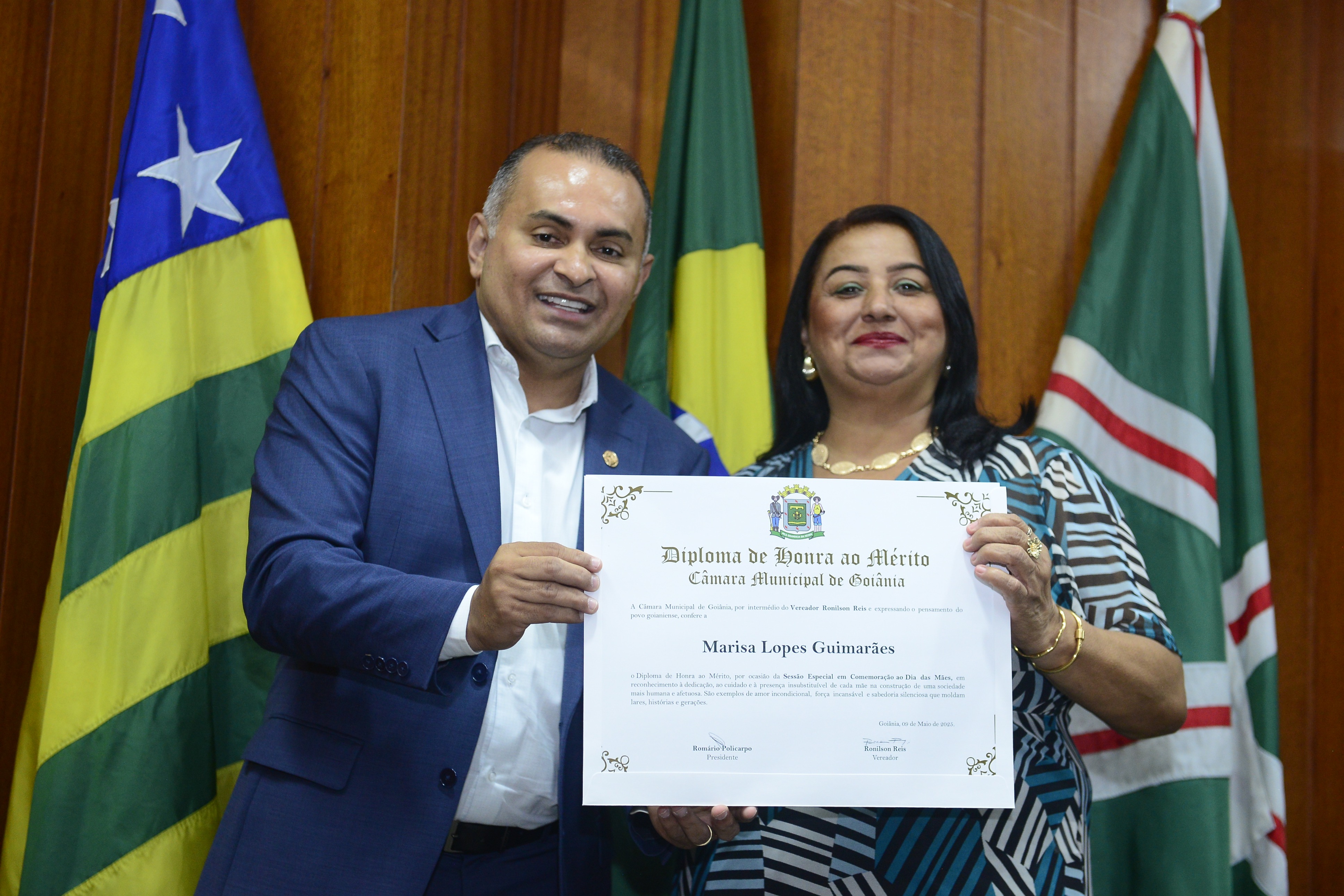 16/5/2025 - Sessão Solene: Outorga de Títulos de Cidadania Goianiense: Sra. Maria das Graças Soares Amorim; Srs. João Batista Moreira e Reynaldo Soares da Fonseca