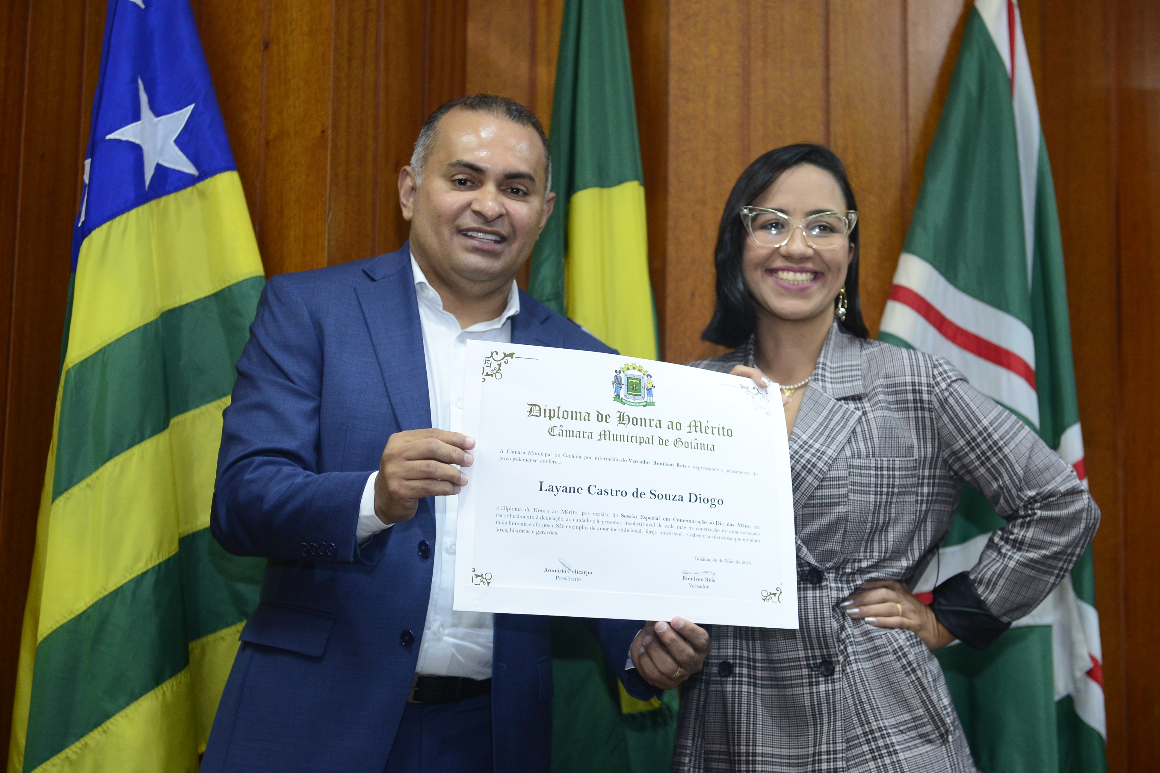 16/5/2025 - Sessão Solene: Outorga de Títulos de Cidadania Goianiense: Sra. Maria das Graças Soares Amorim; Srs. João Batista Moreira e Reynaldo Soares da Fonseca