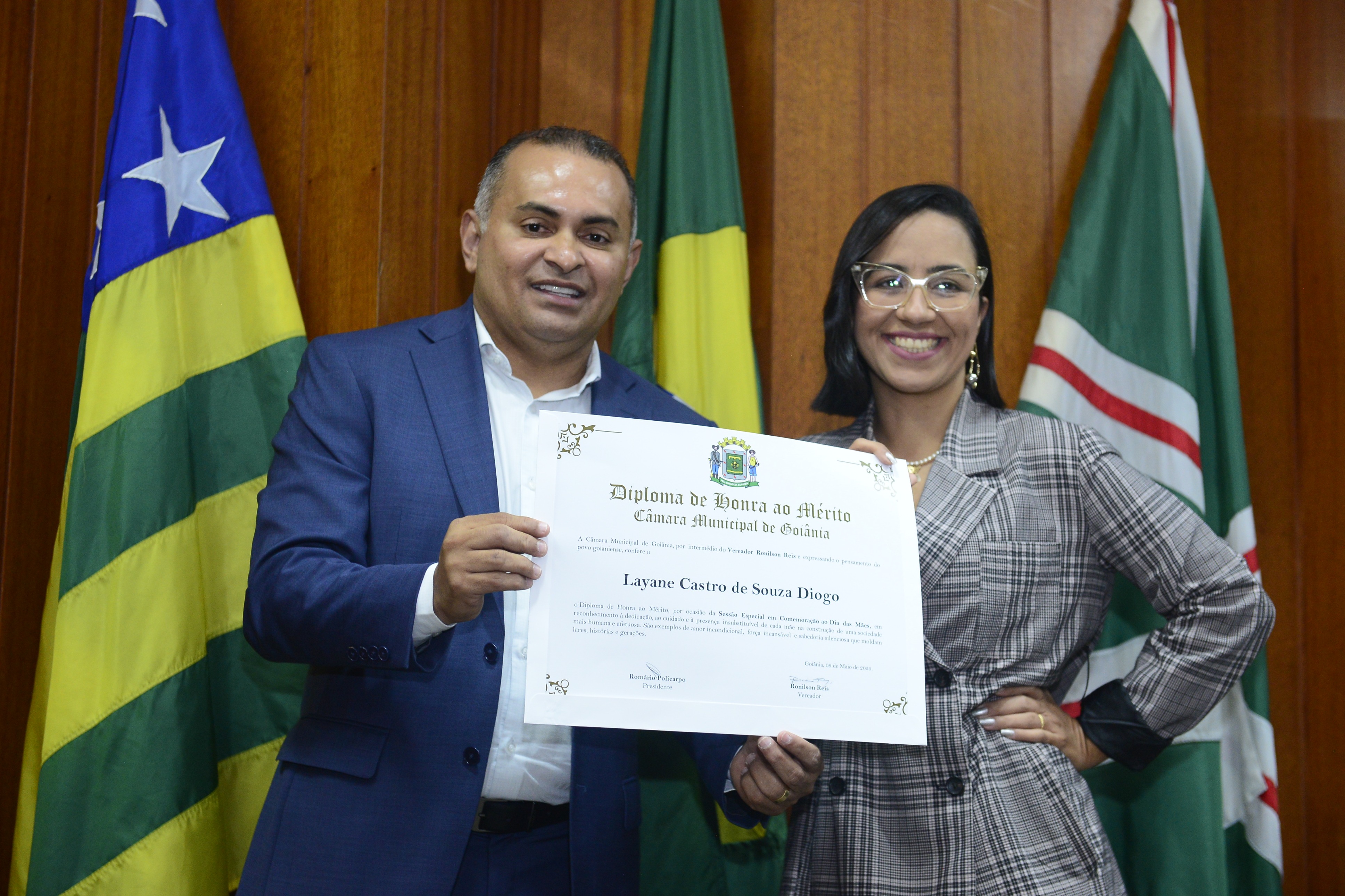 16/5/2025 - Sessão Solene: Outorga de Títulos de Cidadania Goianiense: Sra. Maria das Graças Soares Amorim; Srs. João Batista Moreira e Reynaldo Soares da Fonseca