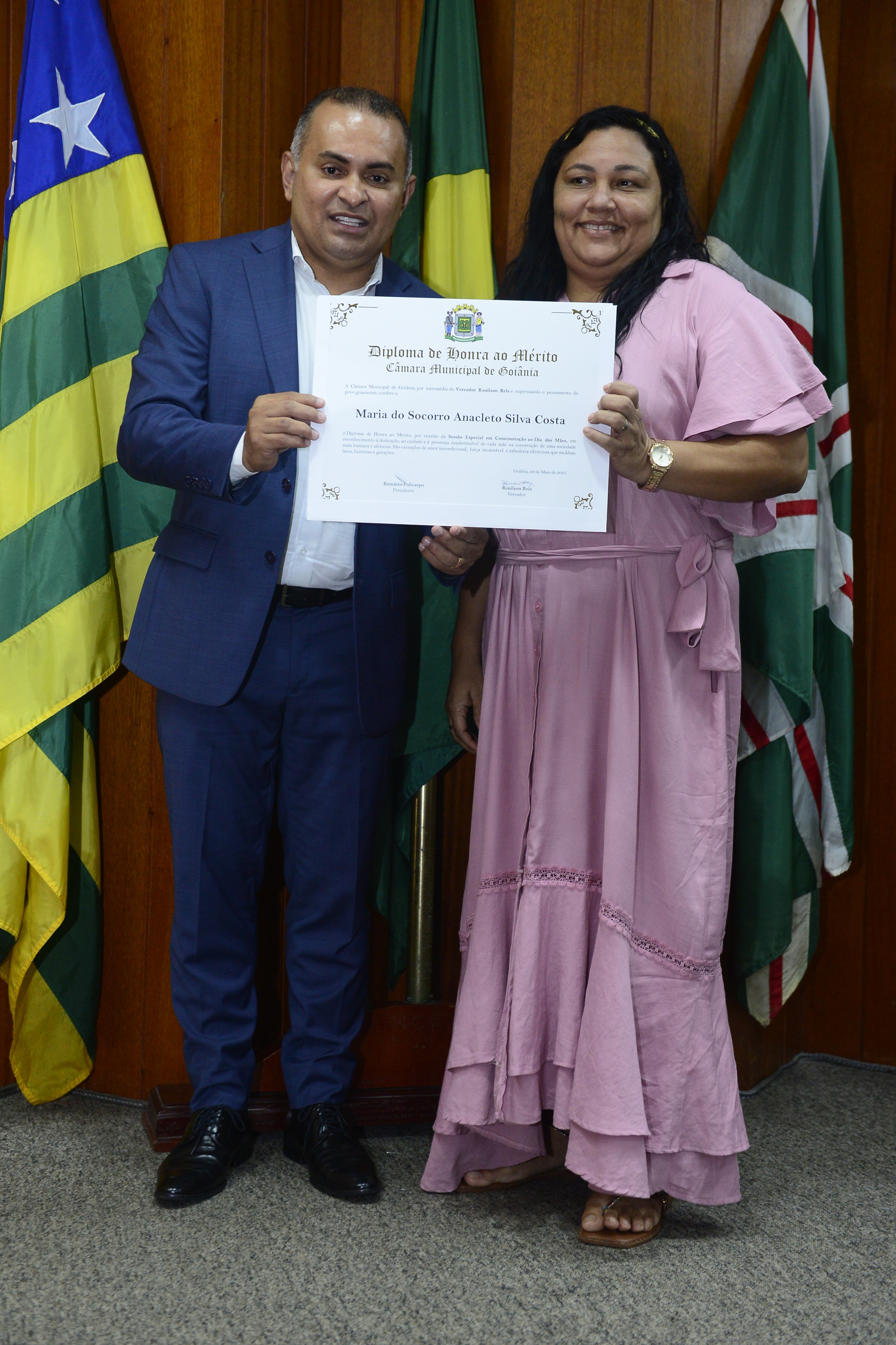 16/5/2025 - Sessão Solene: Outorga de Títulos de Cidadania Goianiense: Sra. Maria das Graças Soares Amorim; Srs. João Batista Moreira e Reynaldo Soares da Fonseca