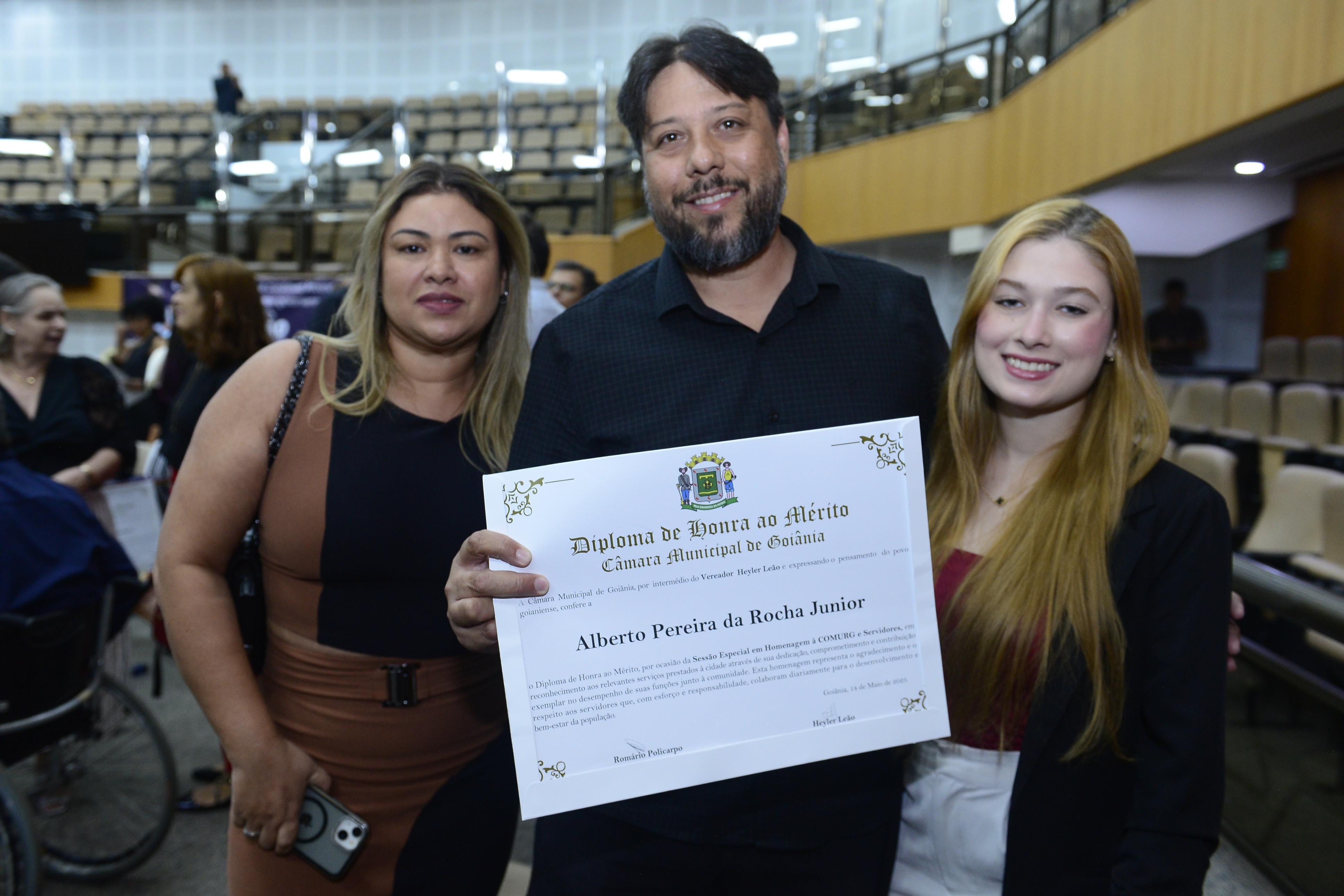 16/5/2025 - Sessão Solene: Outorga de Títulos de Cidadania Goianiense: Sra. Maria das Graças Soares Amorim; Srs. João Batista Moreira e Reynaldo Soares da Fonseca