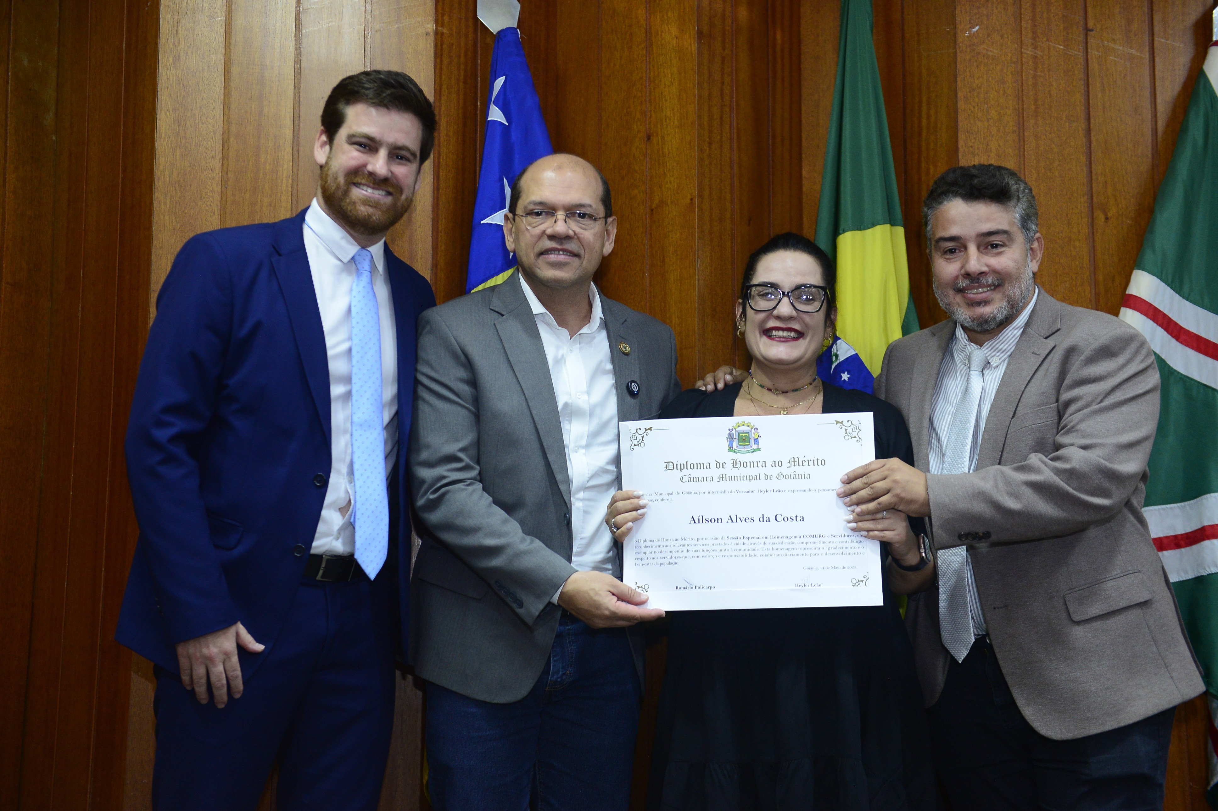 16/5/2025 - Sessão Solene: Outorga de Títulos de Cidadania Goianiense: Sra. Maria das Graças Soares Amorim; Srs. João Batista Moreira e Reynaldo Soares da Fonseca