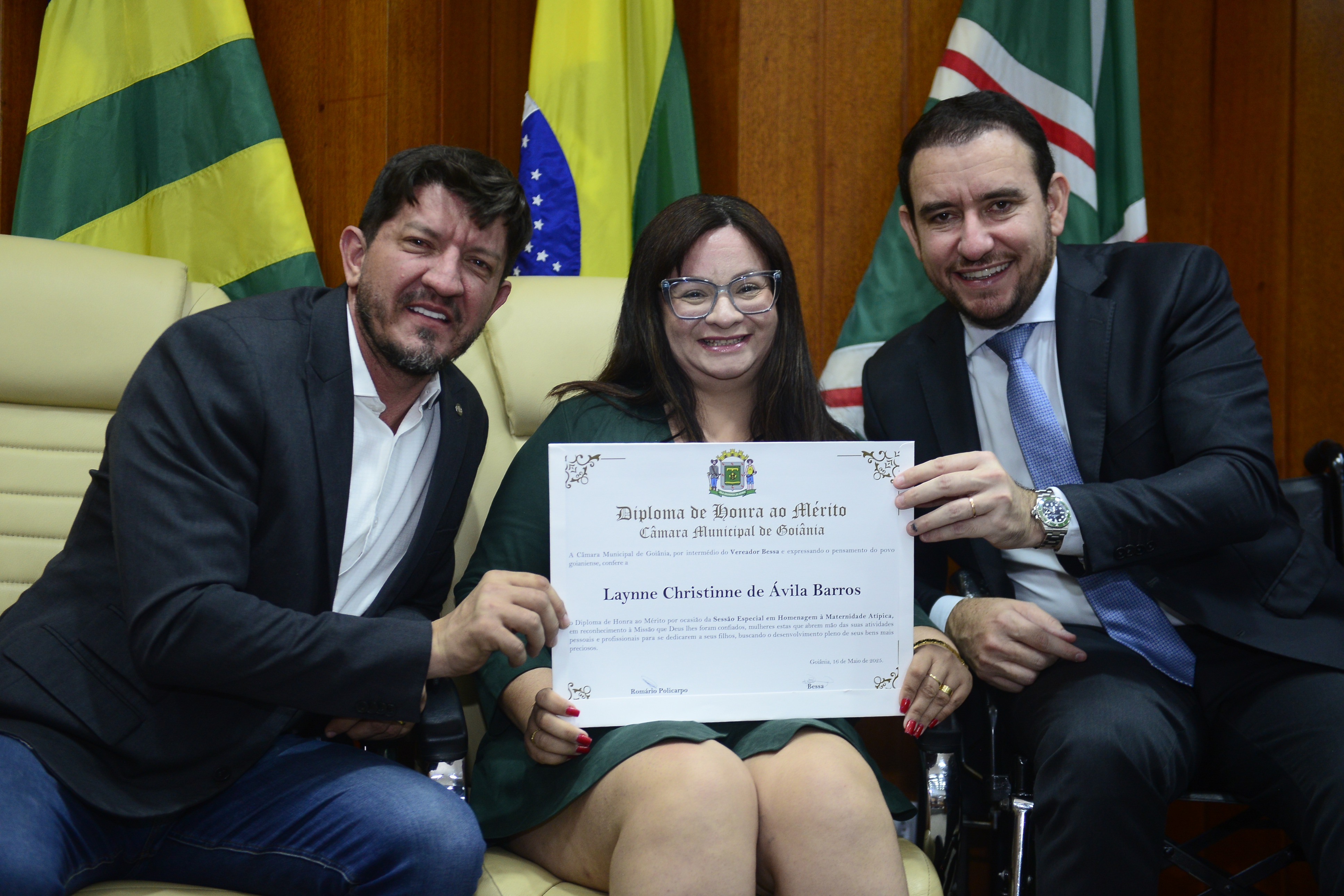 16/5/2025 - Sessão Solene: Outorga de Títulos de Cidadania Goianiense: Sra. Maria das Graças Soares Amorim; Srs. João Batista Moreira e Reynaldo Soares da Fonseca