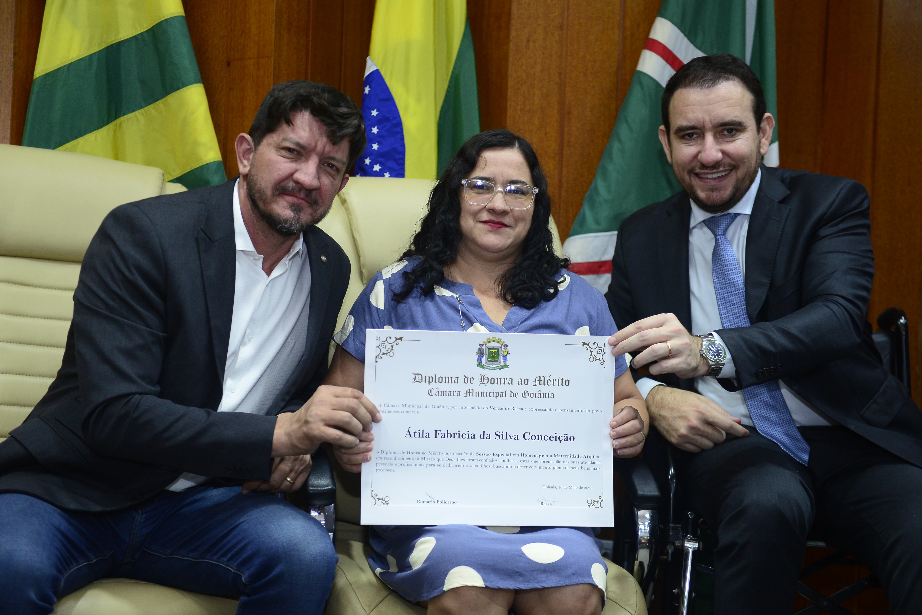 16/5/2025 - Sessão Solene: Outorga de Títulos de Cidadania Goianiense: Sra. Maria das Graças Soares Amorim; Srs. João Batista Moreira e Reynaldo Soares da Fonseca