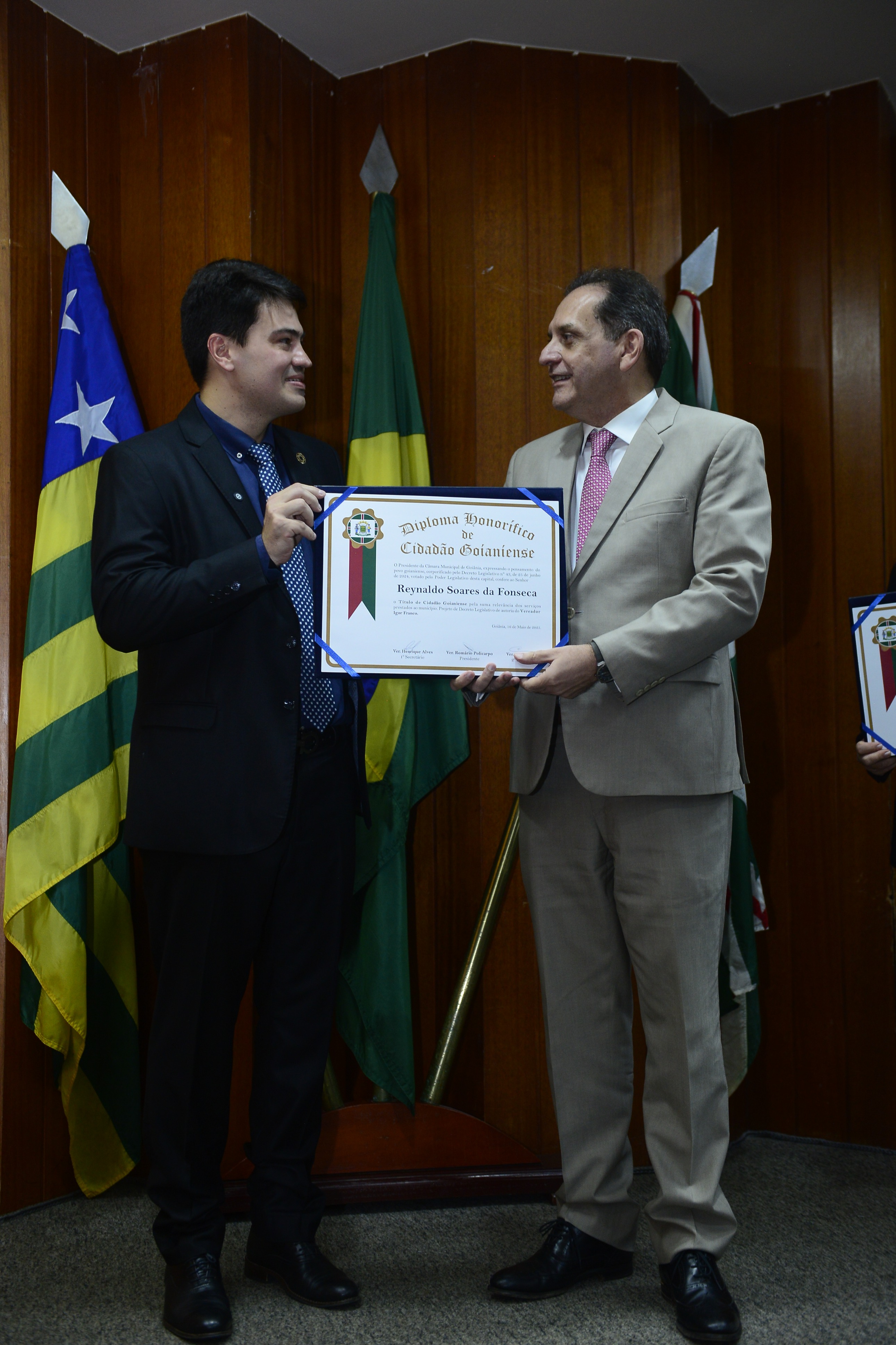 16/5/2025 - Sessão Solene: Outorga de Títulos de Cidadania Goianiense: Sra. Maria das Graças Soares Amorim; Srs. João Batista Moreira e Reynaldo Soares da Fonseca