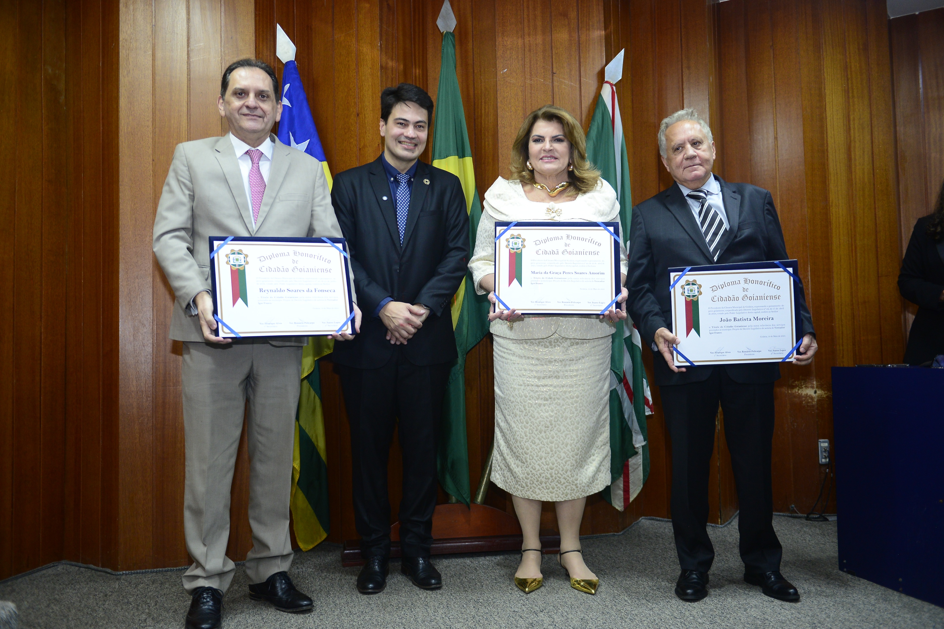 16/5/2025 - Sessão Solene: Outorga de Títulos de Cidadania Goianiense: Sra. Maria das Graças Soares Amorim; Srs. João Batista Moreira e Reynaldo Soares da Fonseca