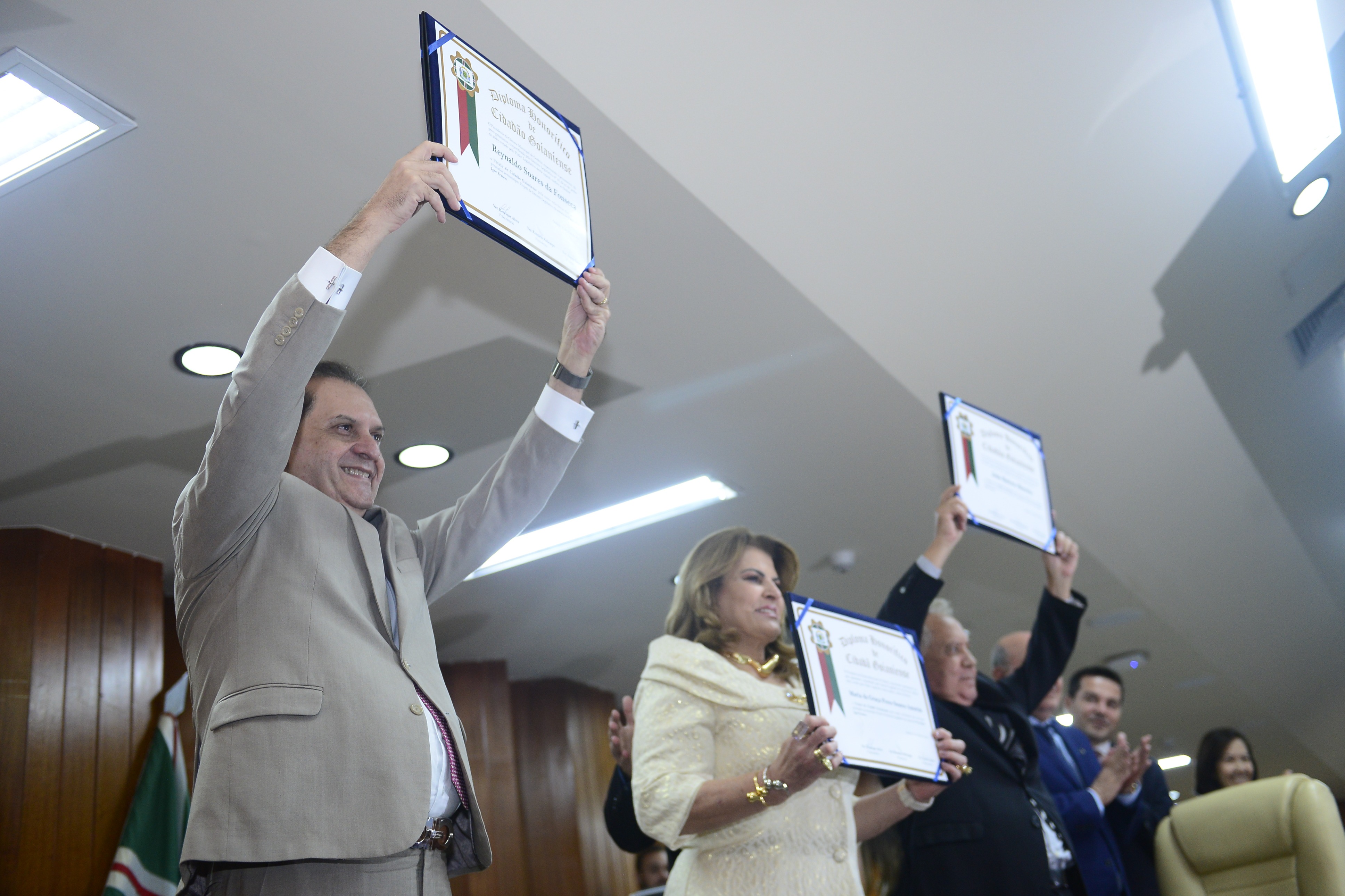 16/5/2025 - Sessão Solene: Outorga de Títulos de Cidadania Goianiense: Sra. Maria das Graças Soares Amorim; Srs. João Batista Moreira e Reynaldo Soares da Fonseca