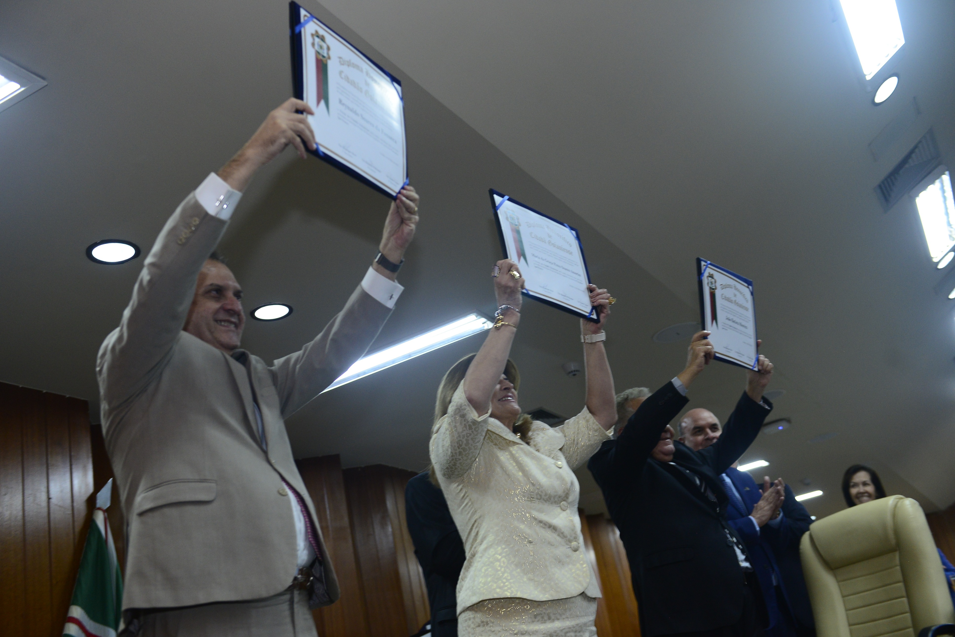 16/5/2025 - Sessão Solene: Outorga de Títulos de Cidadania Goianiense: Sra. Maria das Graças Soares Amorim; Srs. João Batista Moreira e Reynaldo Soares da Fonseca