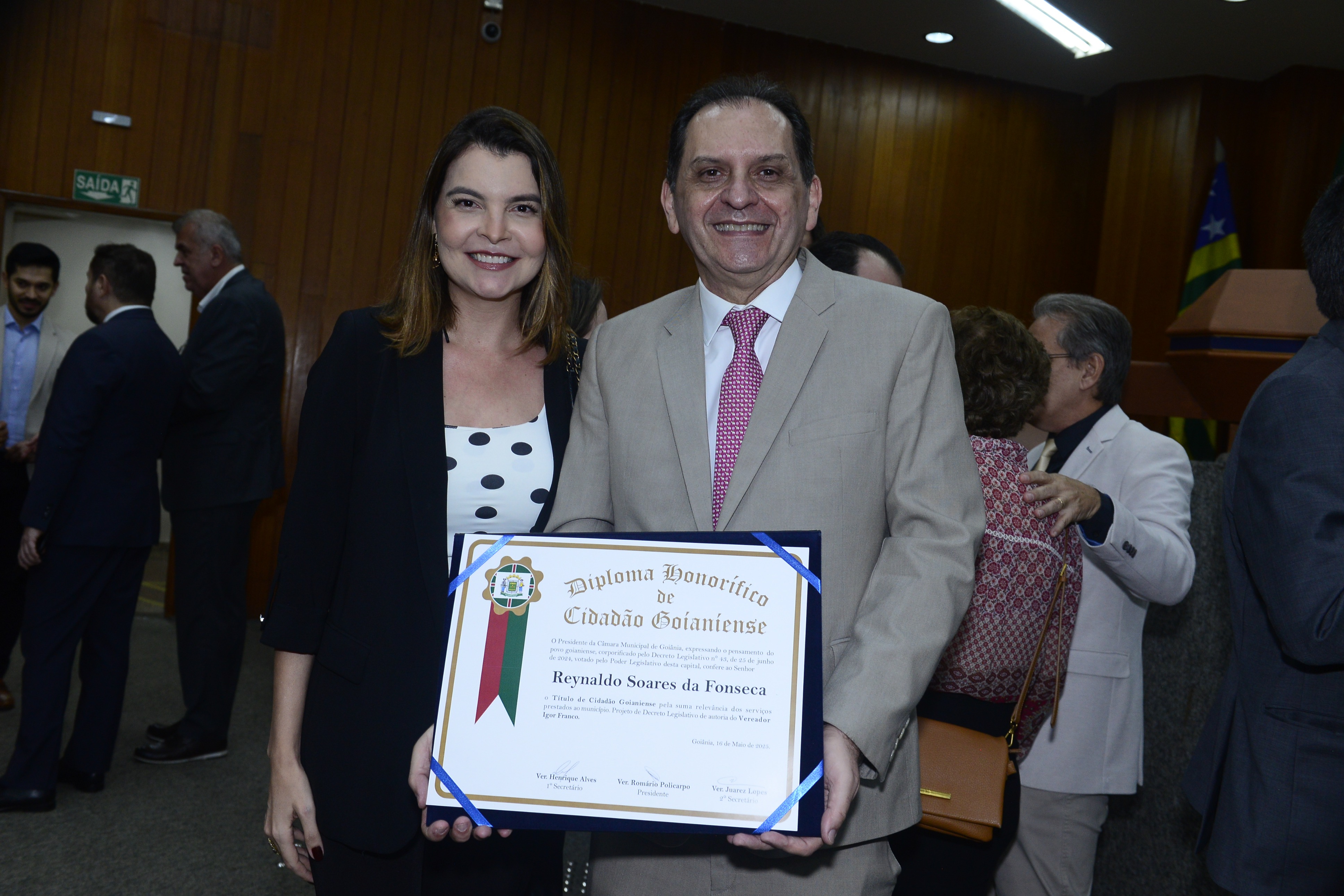 16/5/2025 - Sessão Solene: Outorga de Títulos de Cidadania Goianiense: Sra. Maria das Graças Soares Amorim; Srs. João Batista Moreira e Reynaldo Soares da Fonseca
