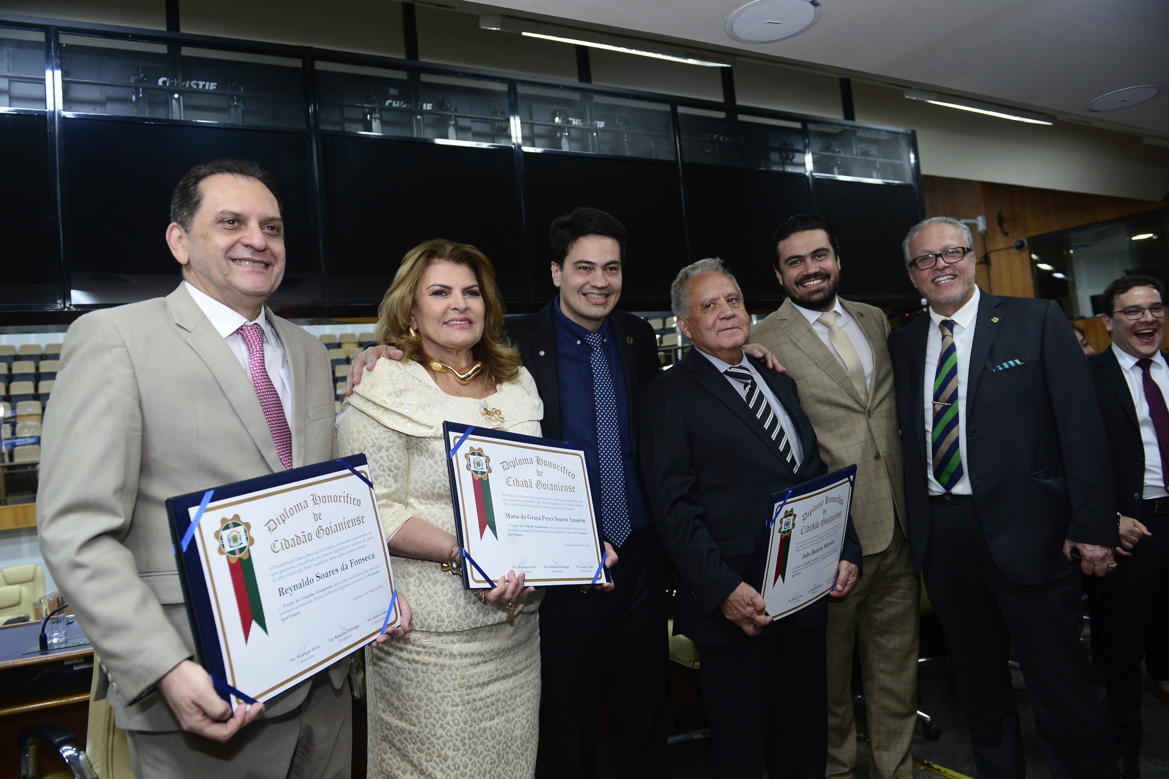 16/5/2025 - Sessão Solene: Outorga de Títulos de Cidadania Goianiense: Sra. Maria das Graças Soares Amorim; Srs. João Batista Moreira e Reynaldo Soares da Fonseca