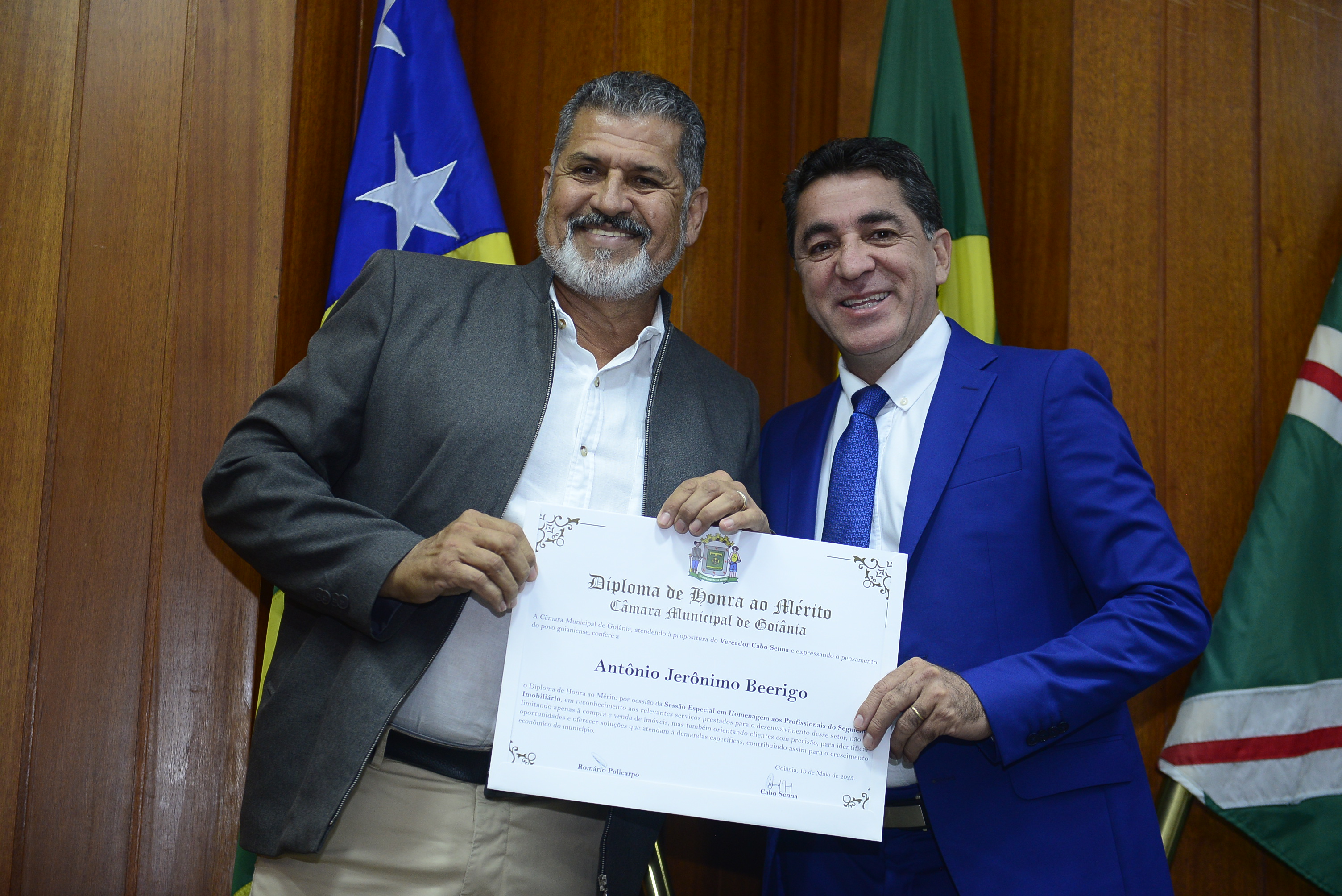 16/5/2025 - Sessão Solene: Outorga de Títulos de Cidadania Goianiense: Sra. Maria das Graças Soares Amorim; Srs. João Batista Moreira e Reynaldo Soares da Fonseca