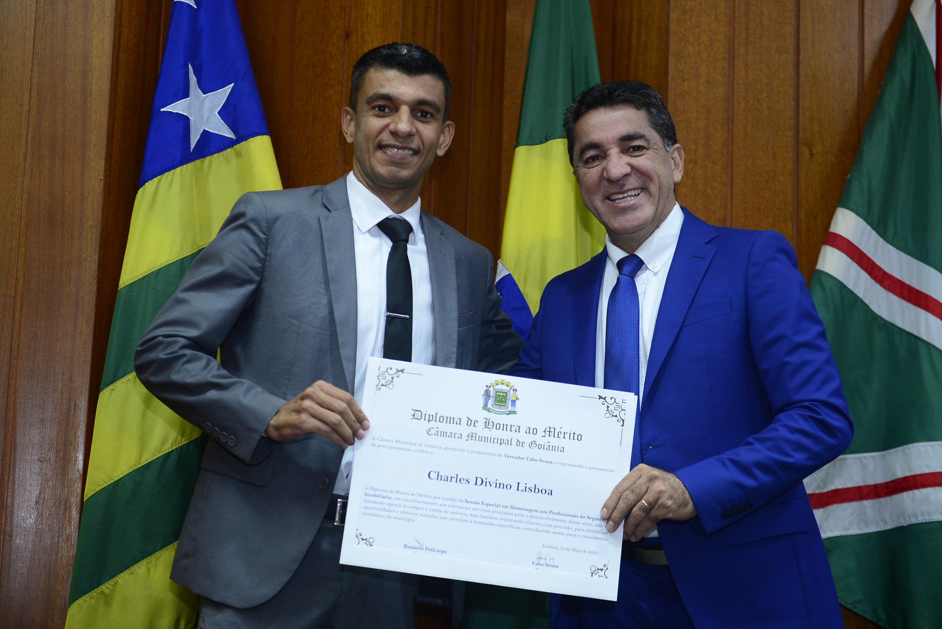 16/5/2025 - Sessão Solene: Outorga de Títulos de Cidadania Goianiense: Sra. Maria das Graças Soares Amorim; Srs. João Batista Moreira e Reynaldo Soares da Fonseca