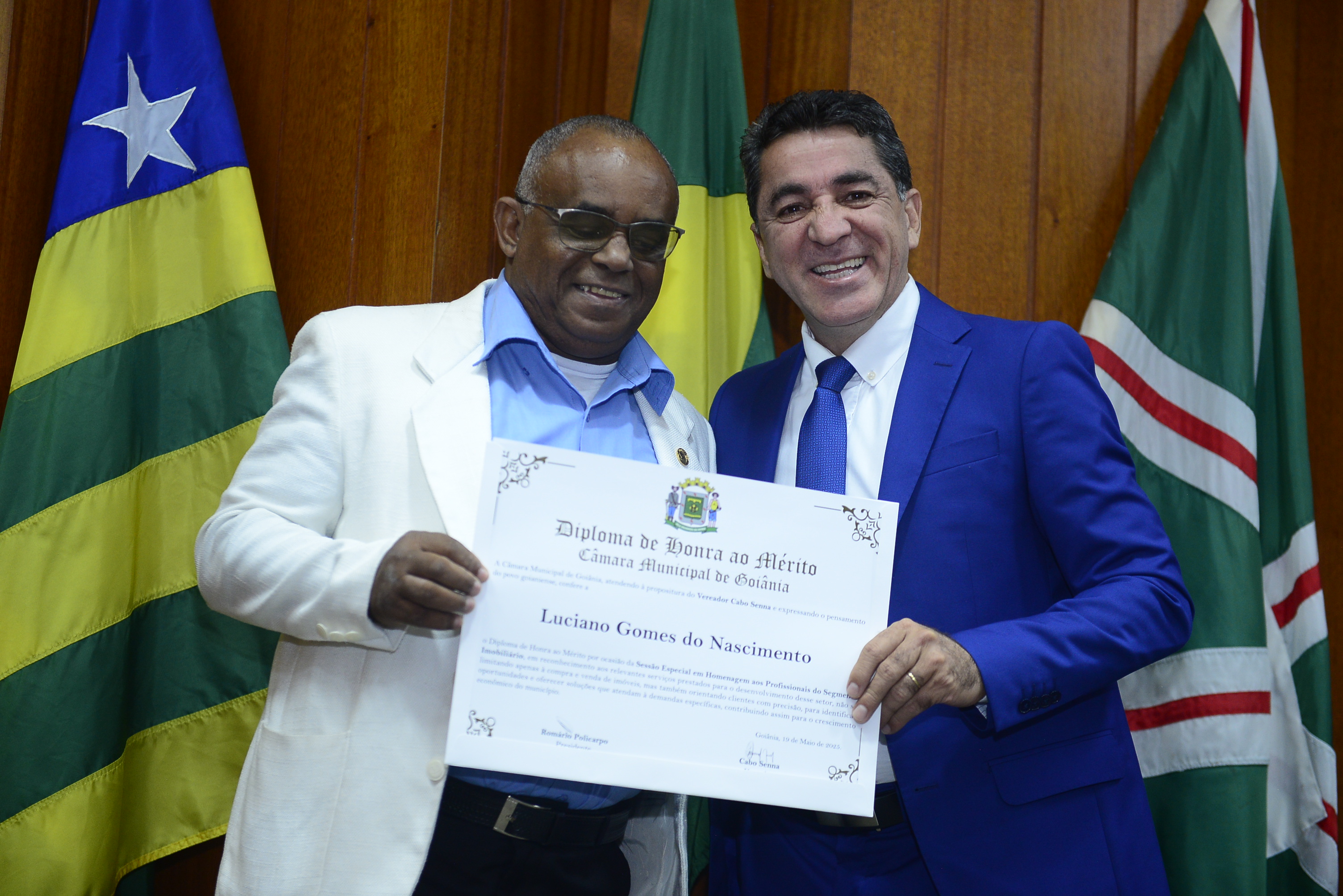 16/5/2025 - Sessão Solene: Outorga de Títulos de Cidadania Goianiense: Sra. Maria das Graças Soares Amorim; Srs. João Batista Moreira e Reynaldo Soares da Fonseca