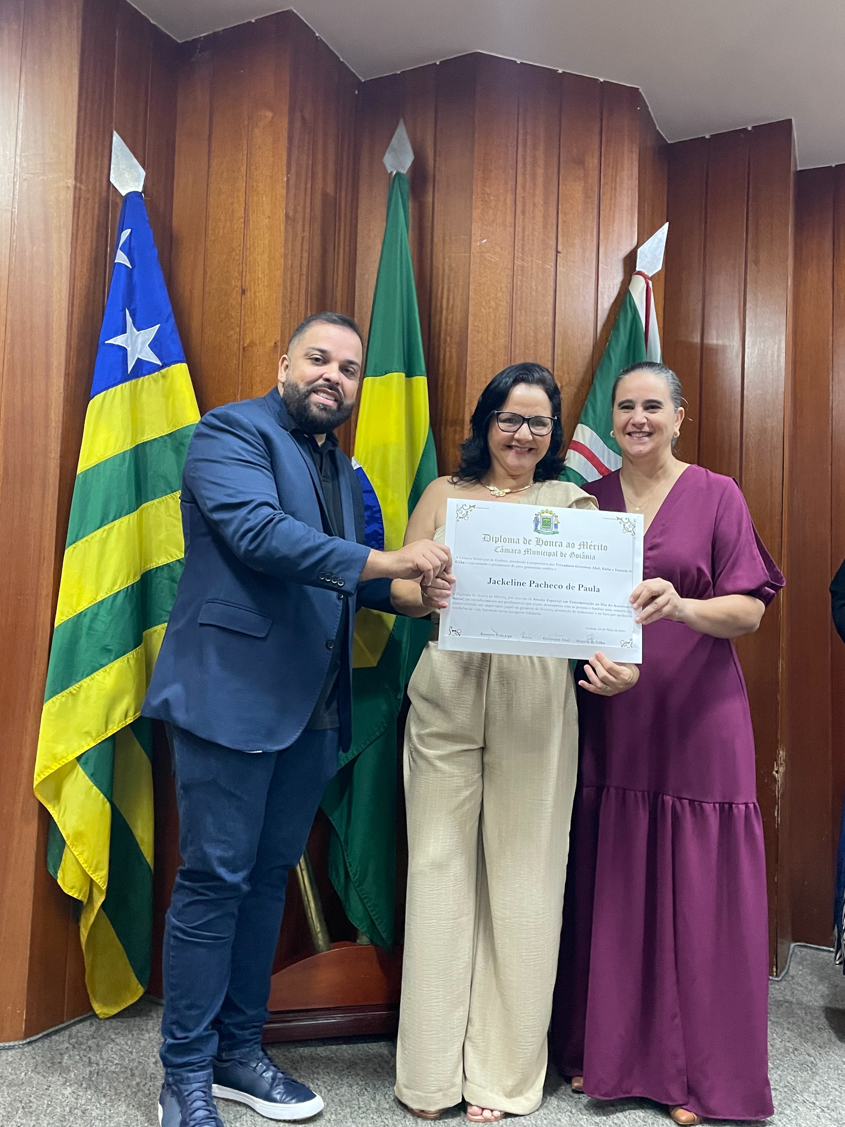 16/5/2025 - Sessão Solene: Outorga de Títulos de Cidadania Goianiense: Sra. Maria das Graças Soares Amorim; Srs. João Batista Moreira e Reynaldo Soares da Fonseca