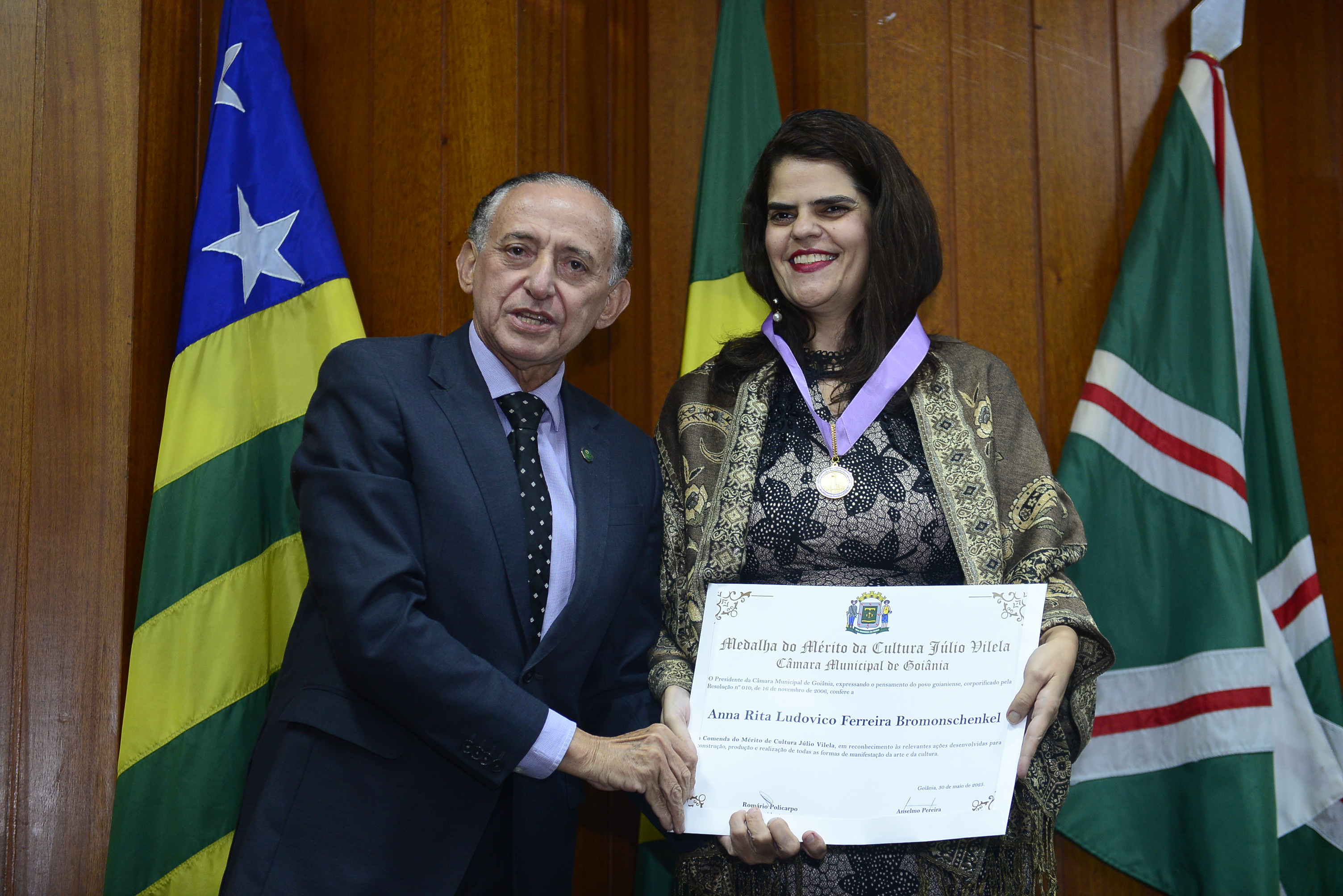 16/5/2025 - Sessão Solene: Outorga de Títulos de Cidadania Goianiense: Sra. Maria das Graças Soares Amorim; Srs. João Batista Moreira e Reynaldo Soares da Fonseca