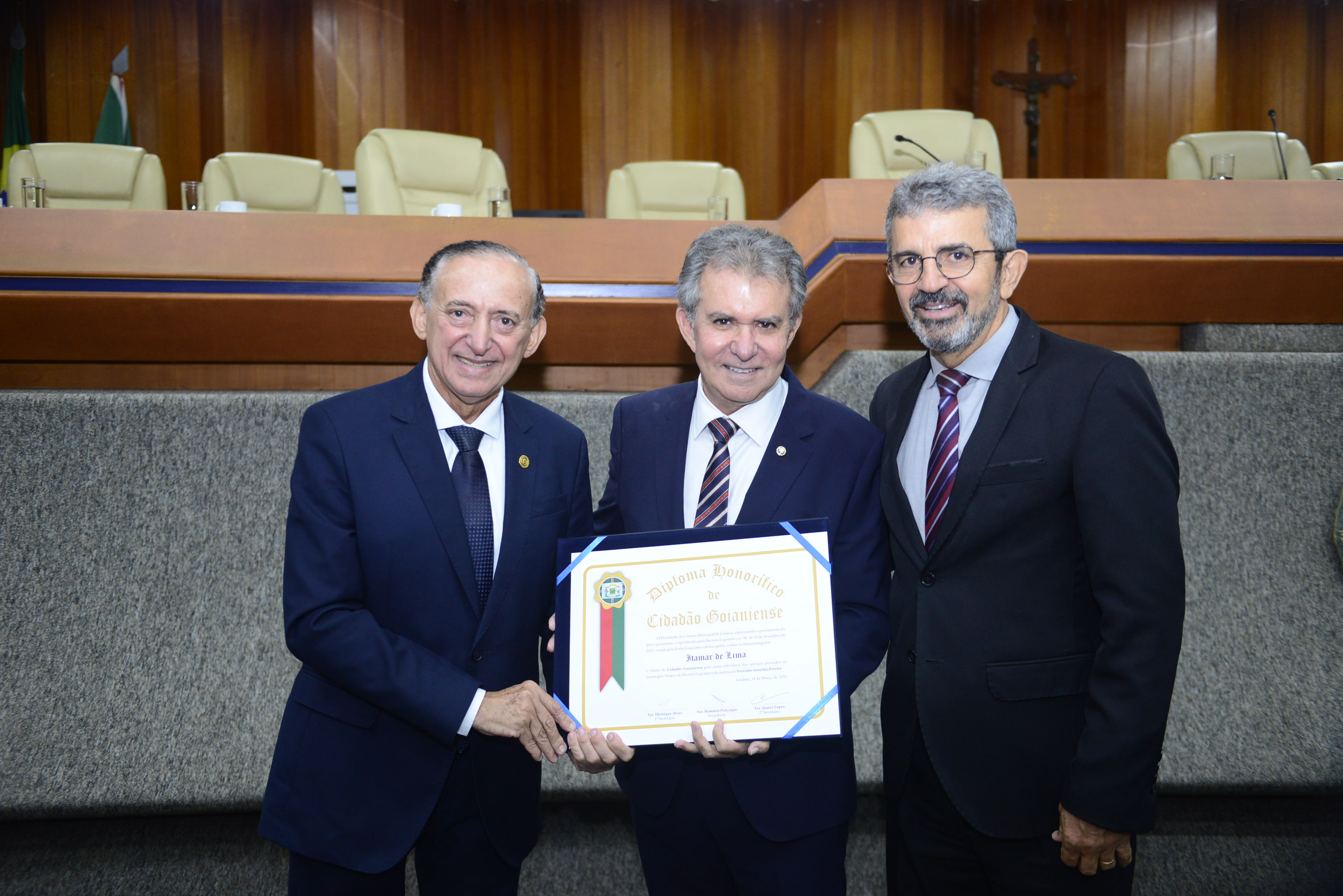14/03/2025 - Sessão Solene de Outorga de Título Honorífico de Cidadão Goianiense concedido aos Senhores Abílio Wolney Alves Neto e Itamar de Lima