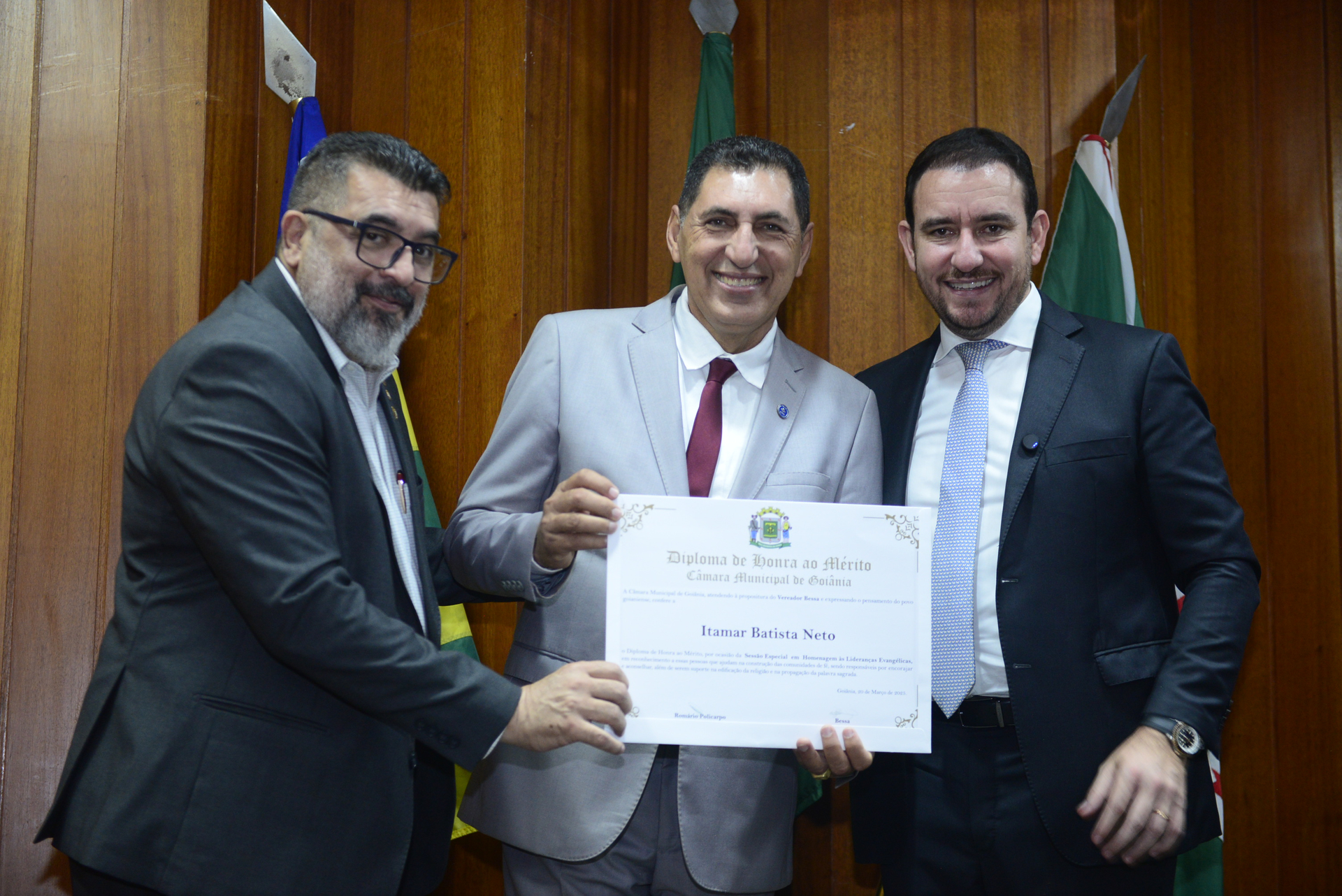 14/03/2025 - Sessão Solene de Outorga de Título Honorífico de Cidadão Goianiense concedido aos Senhores Abílio Wolney Alves Neto e Itamar de Lima