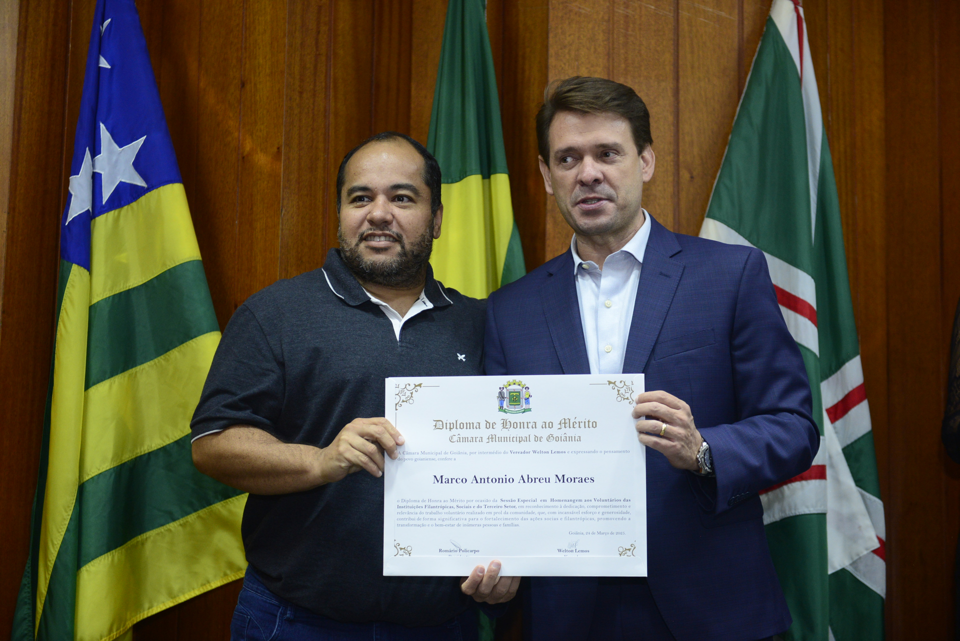 14/03/2025 - Sessão Solene de Outorga de Título Honorífico de Cidadão Goianiense concedido aos Senhores Abílio Wolney Alves Neto e Itamar de Lima